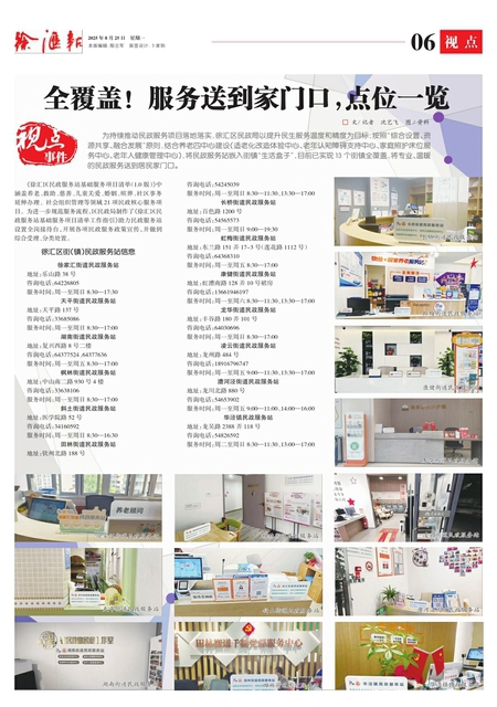 为持续推动民政服务项目落地落实,徐汇区民政局以提升民生服务温度和精度为目标,按照“综合设置、资源共享、融合发展”原则,结合养老四中心建设(适老化改造体验中心、老年认知障碍支持中心、家庭照护床位服务中心、老年人健康管理中心),将民政服务站嵌入街镇“生活盒子”,目前已实现13个街镇全覆盖,将专业、温暖的民政服务送到居民家门口。