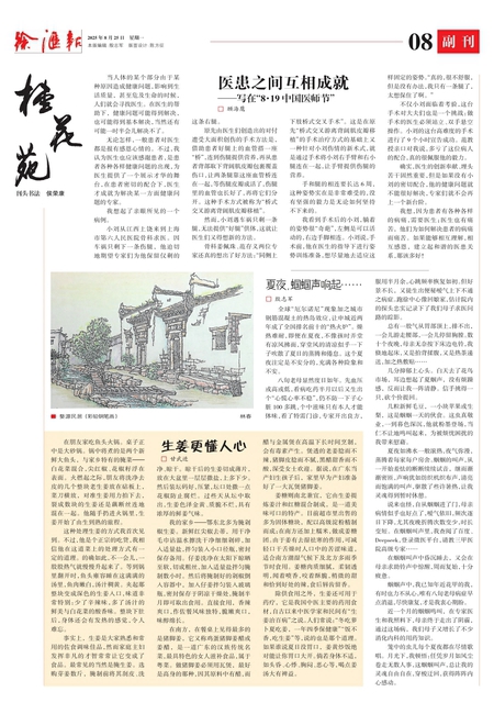 我想,因为患者有各种各样的病痛,需要医生;医生也有痛苦, 他们为如何解决患者的病痛而痛苦。 如果能够相互理解,相互感恩, 建立起和谐的医患关系,那该多好!