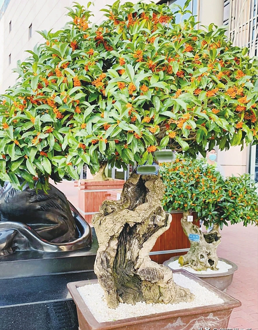 在桂花萌发新芽或花蕾时, 改施磷钾肥,能促进开花又多又香。 另外,桂花树还需要定期修剪, 以保持优美的树形和通风透光。