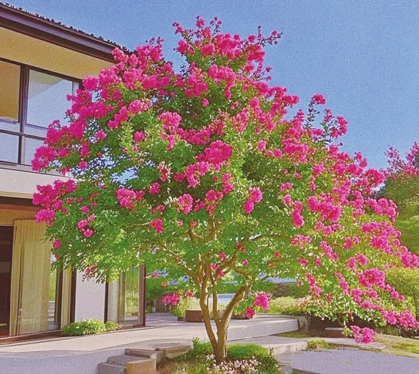 紫薇树,在古代,就是皇家园林和翰林院的“吉祥之花”。 紫薇花也被称为:“仕途花”“花中公务员”。 历代文人墨客与达官显贵, 对紫薇青睐有加, 题咏不绝。 古诗云:“职在内庭宫阙下, 厅前皆种紫薇花”。 紫薇花被视为“紫薇仙子”的化身,屹立在人间守护美丽安宁的花,也叫它“百日红、满堂红”。 如今,也有很多人, 喜欢在院子的东边或门前栽种一棵紫薇树,寓意“紫气东来”。