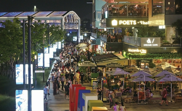 每当夜幕降临, 徐汇滨江梦中心霓虹闪烁,人流如织, 一片繁荣繁华景象。商伟 摄影报道