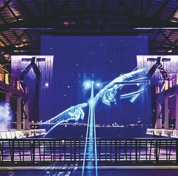 在去年广受好评的船坞水幕投影基础上,今年将新增激光、冷焰火等科技元素,并搭配真人现代舞表演,打造一场科技感拉满的“光影舞台剧”,在黄浦江畔实景演绎“人与科技的对话”,进一步升级光影秀的观赏性与互动性。