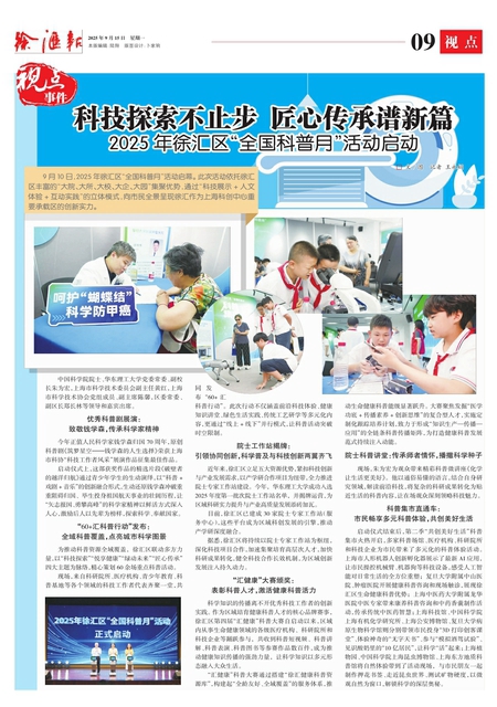 9月10日,2025年徐汇区“全国科普月”活动启幕。此次活动依托徐汇区丰富的“大院、大所、大校、大企、大园”集聚优势,通过“科技展示+人文体验+互动实践”的立体模式,向市民全景呈现徐汇作为上海科创中心重要承载区的创新实力。