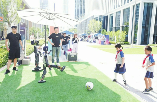 集市设有五大单元:在AI互动展区,可以零距离体验最新AI应用,对话智能助手;在具身机器人专区,可以欣赏机器人翩翩起舞,机器人还能陪你聊天、互动、踢足球;在漕河泾科创展区, 能了解最新科创平台、前沿科技成果;在国风游戏区, 能跨界体验打破次元壁的AI+游戏;在泾彩美食区,你可以品尝小吃和创意饮品,让味蕾“舞蹈”一下。