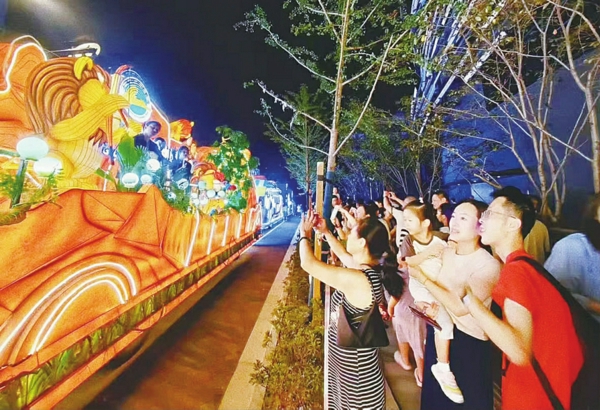 9月24日晚, 上海旅游节花车巡游为活动预热———25辆造型各异的特色花车将停靠鑫耀光环·Live商圈展演, 部分花车融入二次元元素,更有Coser现场互动,让元界街区瞬间变身城市节庆舞台,市民可近距离打卡拍照,感受节日氛围。(下转第2版)