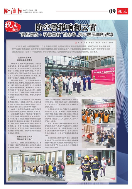 据悉, 本次防空警报试鸣演练成效显著,警报鸣响率、统控率、覆盖率均达到100%。 徐汇区应急管理局、消防支队、卫健委等多部门全流程参与集中宣教和指挥协同环节, 各部门密切配合、协同作战,进一步强化了演练的实战性和规范性。