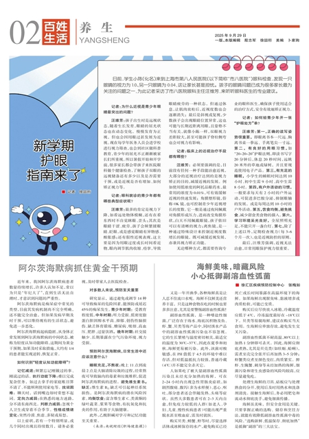 汪维芳:第一,正确的读写姿势很重要, 即眼离书本一尺远、胸离书桌一拳远、 手离笔尖一寸远。第二, 有良好的用眼习惯,如“20-20-20”护眼法则,即读书写字20分钟后,休息20秒时间,远眺20米外的草地或绿树, 并且要规范使用电子产品。 第三,有充足的睡眠, 小学生的睡眠时间达到10小时、初中生需 9小时、高中生需 8小时。 第四,有户外活动的习惯,一般要求每天有2小时的户外运动,可促进多巴胺分泌,抑制眼轴的发展, 或是每周达到10小时的户外活动。第五,饮食均衡,避免挑食,减少甜食类食物的摄入。第六,学习环境采光良好, 全屋照明充足,不能只开一盏台灯。第七,除了上述以外,定期检查视力(每3-6个月一次),也是近视防控的原则。