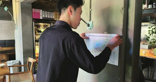 沿街商户正在店内醒目位置张贴3.0版“公厕地图”