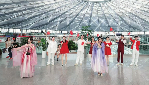 铁路上海南站候车大厅内的阿卡贝拉表演