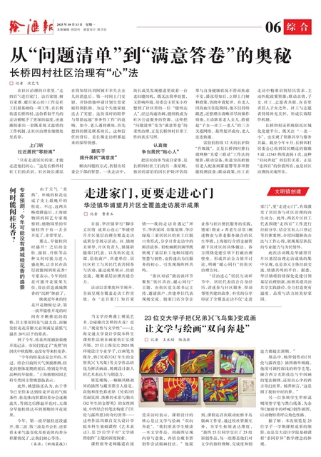长桥四村还积极依托区域化党建平台, 既关注“一老一小”, 也实现了资源共享与服务共赢。 截至今年9月,长桥四村居委会已收到居民赠送的锦旗5面、12345热线表扬1次,这种“双向奔赴” 的信任关系, 正是“走四百”的价值所在,也是社区治理的灵魂所在。