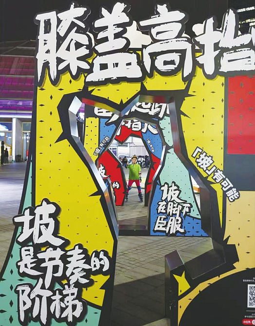 赛场之外更有多元体验。 以“坡”为灵感的巨型门头、彩虹线构筑的“一飞冲天火箭”等艺术装置,是必打卡的潮流地标;“空中骑迹·奇妙镜屋”的镜面空间还能拍出创意大片。 500平方米“极限宠物区”、亲子友好的“HOOD动体验区”,满足不同人群需求,国潮舞狮巡游更让传统与潮流碰撞出火花。
