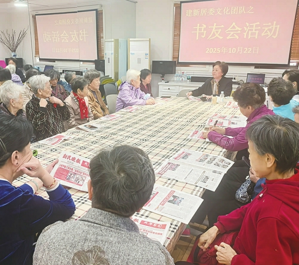 天平街道是徐汇区老龄化程度比较严重的社区之一,从1997年到2013, 陈元春一直在天平街道担任居民区党总支书记。 她说,去走访居民区时,“一个楼道打开门,走出来都是白发老人”,日常,老人们只能待在家里看电视打发时间。 建新书友会成立于上个世纪90年代,当初只是一个小小的读报小组, 但对老人们来说有着别样的意义,很多老人们在这里找到归属感,他们通过书友会交流心事,学习知识。 陈元春担任建新居民区党总支书记期间,十分注重发挥好书友会政策宣讲、知识分享、沟通交流的平台作用。