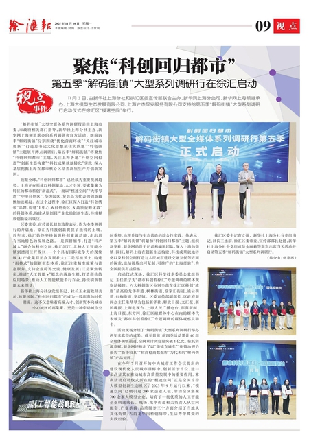 徐汇区委书记曹立强, 新华社上海分社分党组书记、社长王永前,徐汇区委常委、宣传部部长赵懿,新华社上海分社分党组成员金丽莉等嘉宾出席当天活动并启动第五季“解码街镇”大型系列调研行。(综合自:新华网)