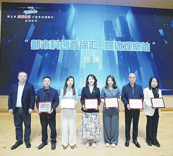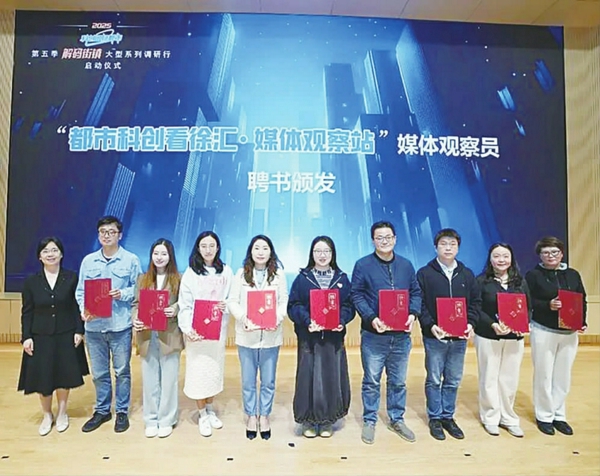 启动仪式现场,徐汇区科学技术委员会党组书记、主任张宁为“都市科创看徐汇”专题调研的媒体观察站揭牌。六大科创街区分别坐落在徐汇区科创“浓度”最高的龙华街道、枫林街道、徐家汇街道、凌云街道、虹梅街道、华泾镇。区委宣传部副部长、区政府新闻办主任朱琴琴为包括新华社、解放日报、文汇报、新民晚报、上海电视台、上海人民广播电台、澎湃新闻、上海日报、东方网、徐汇区融媒体中心在内的媒体代表颁发“都市科创看徐汇”专题调研的媒体观察员聘书。