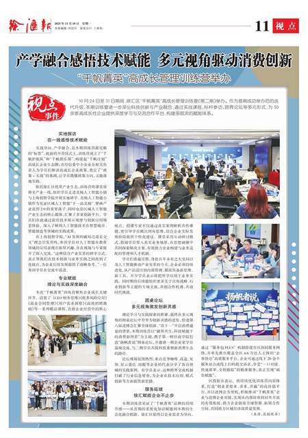 10月24日至31日期间,徐汇区“千帆菁英”高成长管理训练营(第二期)举办。 作为首期成功举办后的迭代升级,本期训练营进一步深化科技创新与产业融合,通过实战课程、标杆参访、跨界论坛等多元形式,为50余家高成长性企业提供深度学习与交流合作平台,构建多层次的赋能体系。