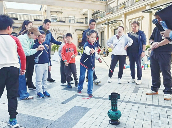 活动现场, 各类趣味项目有序开展。4-7岁年龄段的“活力套圈圈”处,孩子们踮着脚尖瞄准目标, 家长在旁轻声指导, 套中娃娃时的欢呼此起彼伏;“趣味钓鱼”区,一双双小手握着鱼竿专注捕捞磁力片小鱼, 每钓起一条贴有奖品贴纸的小鱼, 便立刻举起来向家长炫耀;“变装投壶”充满童趣,小朋友手持箭支尝试投壶, 古雅的游戏形式让孩子们乐在其中。