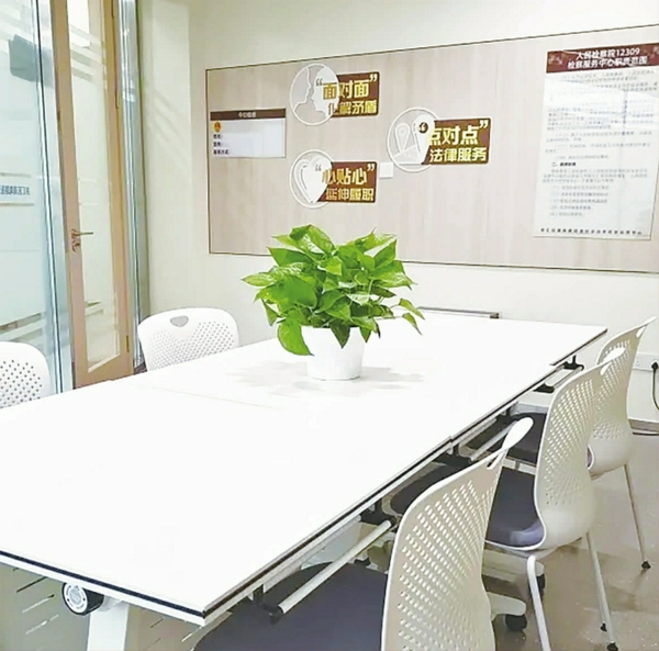 引导受理区不仅是整个中心的“第一窗口”,也是集调解受理与法律咨询于一体的综合平台。多元化解区融合多部门职能, 共同化解矛盾纠纷。“三所联动”调解室,合力公安、司法、律所共同化解矛盾;信访接待室,解答信访问题;巡回法庭,可以开展审判工作;巡回检察室,开展检察监督工作。 一空间多用途,既为居民能够“一站式”解决问题提供便利,又保障了矛盾化解工作的多元合力,实现了资源的高效整合。