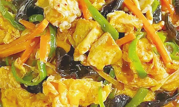 3. 锅中倒油,油热后倒入鸡蛋液炒熟盛出。