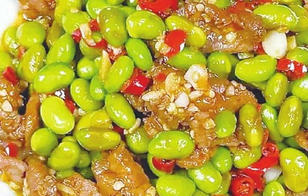 食材:毛豆200克、牛肉100克、生姜1块、大蒜2瓣、料酒1勺、生抽2勺、盐适量、黑胡椒粉适量、淀粉适量、食用油适量