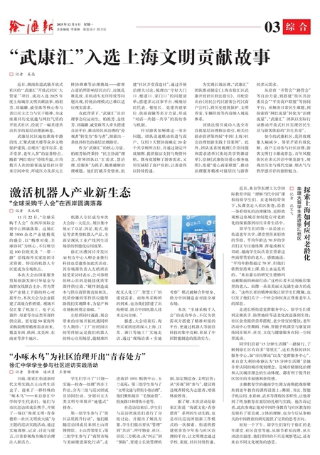 日前,徐家汇街道新时代文明实践点土山湾生活盒子, 迎来了一群特殊的“啄木鸟”———来自徐汇中学的学生代表们。 他们与市民巡访团成员携手,开展了一场以“海派文明·青春德育—社区文明放大镜”为主题的巡访实践活动,通过实地观察、记录、讨论与建言,以青春视角为城市治理注入新活力。