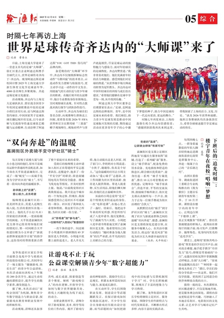 日前,上海交通大学迎来了一堂意义非凡的足球“大师课”。徐汇区重点企业阿迪达斯携手全球代言人、世界足球传奇齐内丁·齐达内, 现身阿迪达斯足球校园日暨2025年上海交通大学新生体育文化节足球嘉年华。4000余名师生齐聚现场, 共赴这场足球文化盛宴。