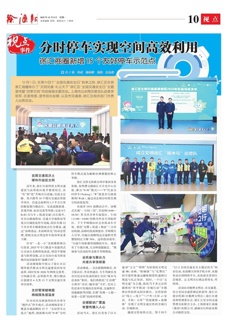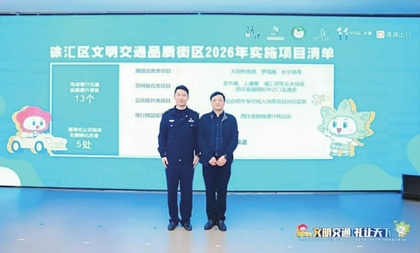 活动现场集中展示了徐汇区以硬件提升推动文明交通建设的坚实成果,同时发布2026年网络完善类、空间融合类、品质提升类、慢行精品区创建共4大类13个文明交通实事项目清单。