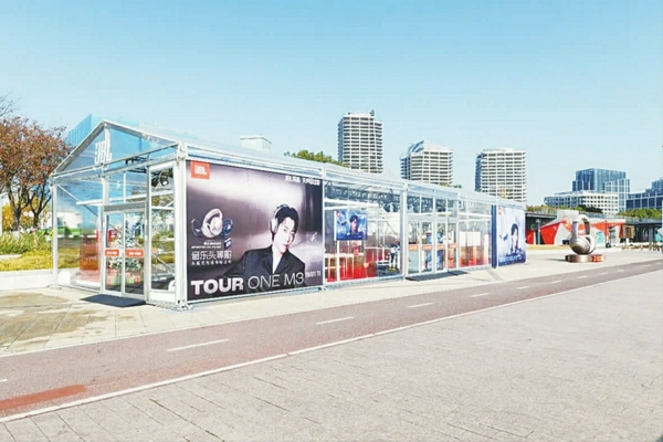 龙腾大道东安路路口,JBL“头”号主题痛店点燃年轻群体热情。 动感DJ表演、人机共舞创意街舞轮番上演,AI 机器人店长与市民趣味互动, 延续西岸“AI+ART”双A发展策略。耳机巨物打卡点与五大产品体验区,让游客沉浸式感受声学科技魅力。