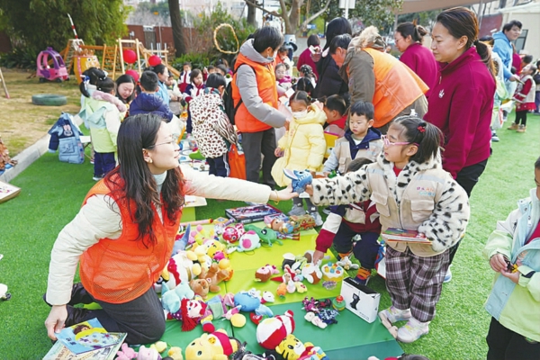 1月28日, 经过精心筹备,徐家汇街道“宝贝有爱 童享市集”温暖开市。 幼儿园孩子化身“小掌柜”,现场摆摊,他们捐出自己的绘本和玩具,用玩具换绘本,再把绘本捐给2000公里外的小伙伴。