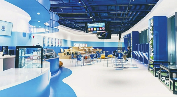 若想歇歇脚、带走专属记忆,申花中心的配套空间同样值得探索。 衍生品旗舰店跳出传统商店框架,将申花精神与海派潮流结合,推出多款限定文创产品,让球迷在挑选周边时更具仪式感;一旁的球迷服务站则化身“城市客厅”,未来还将定期举办球迷沙龙、主题展览,无论是上海市民还是外地游客,都能在这里边喝咖啡边聊足球,感受申花文化的凝聚力。