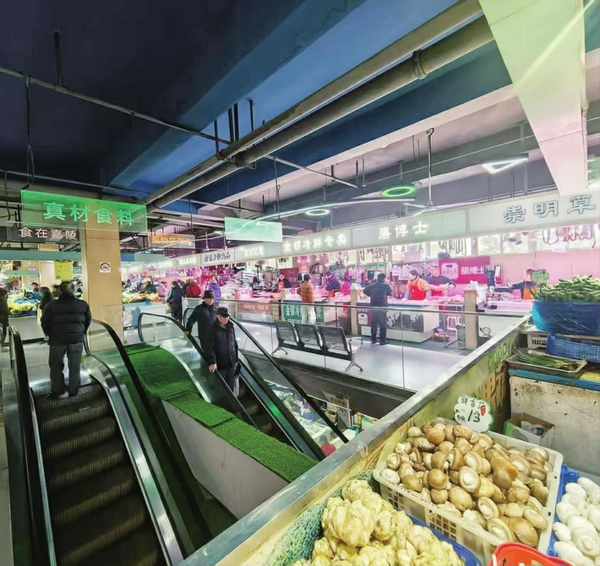 2月11日,上午八点多, 位于徐汇区长桥汇成地块嘉陵菜市场人头攒动,一片繁荣景象。