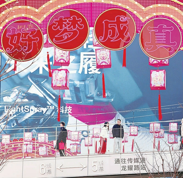 徐家汇商圈张灯结彩,霓虹与红灯相映成趣,商场内外人流不断,购物、餐饮、休闲全线升温,国风展演与潮流打卡点前人头攒动,市民游客在繁华市井中感受海派新春魅力,消费市场红火有序,处处洋溢着团圆喜乐的气息;龙华会现场活动新意十足,鱼灯巡游、民乐演奏、民俗市集轮番上演,古刹钟声与市井烟火相融, 艺术美陈点缀街巷,在传统与时尚的碰撞里,体味最地道的江南年味;黄浦江畔的西岸梦中心以水岸风情独树一帜,戏曲展演、非遗市集、灯光装置点亮滨江空间,江风拂面,年味悠长,市民或漫步江堤赏景,或驻足市集体验手作, 在开阔水岸拥抱新春,文艺与烟火气在此完美交融。