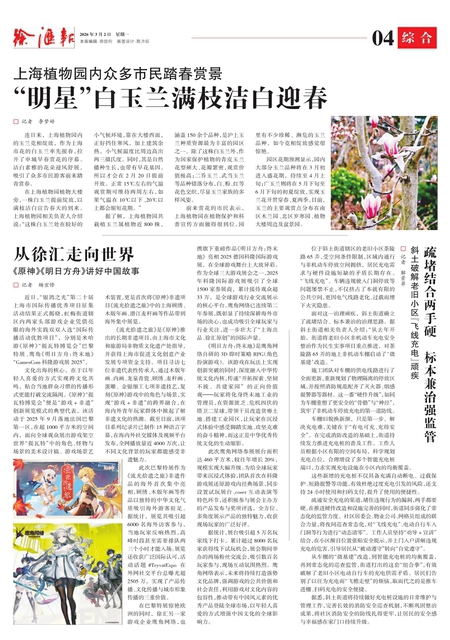 连日来, 上海植物园内的玉兰竞相绽放, 作为上海市花的白玉兰率先报春,拉开了申城早春赏花的序幕。洁白素雅的花朵迎风舒展,吸引了众多市民游客前来踏青赏春。