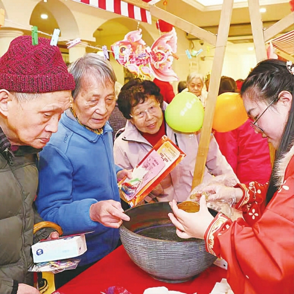 “年年岁岁望元宵,岁岁年年闹元宵。 ”元宵节的脚步近了,日前,在徐汇区第三老年福利院(下称三福院)内张灯结彩,“元宵集市庆团圆 泾彩相伴享安康”主题元宵游园会暨3月庆生会热闹温馨,三福院的长者们与家属、社区居民欢聚一堂,共赴这场元宵盛宴。