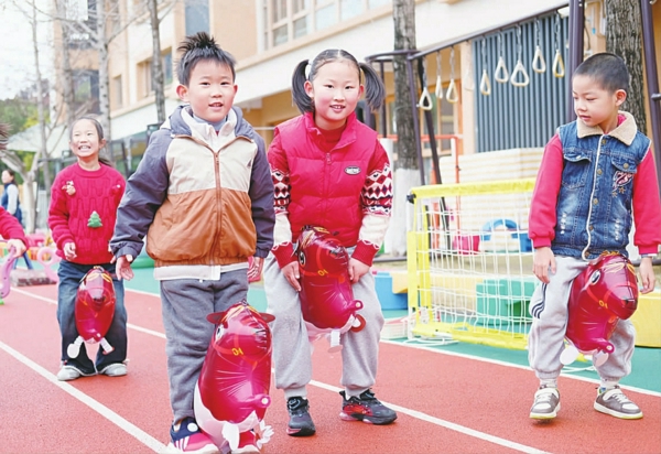 徐汇区东兰幼儿园入园处设有“一马当先”“马到成功”等成长跨栏,孩子们勇敢跨越、抽取祝福,在浓浓年味与温暖氛围中,快乐开启新学期。
