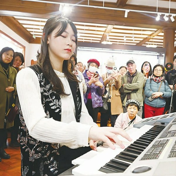 走进东方乐器博物馆, 前来参加这堂午间音乐思政课的市民早已等候,找好“最佳观赏点”,静享难得的美好。 上海音乐学院电子管风琴专业老师白哲尔和二胡演奏者张嘉茜以一曲《红梅随想曲》拉开这堂音乐思政课的序幕。此曲选自歌剧《江姐》,红梅赞的旋律经过改编,既熟悉又有新意,一下拉近了与听众的距离,似又回想起那些烽火岁月。而由电子管风琴专业学生田抒可作曲、编曲的《云南风景》在叶宇童的演奏下,曲调轻快优美,一派春意淋漓展现,听众们陶醉其中。最后一曲是《我的中国心》, 耳熟能详的流行歌曲经过改编为电子管风琴二重奏, 在电子管风琴丰富音色与层次编排下,褪去流行曲风的温婉,更添雄浑壮阔、铿锵有力的气势。
