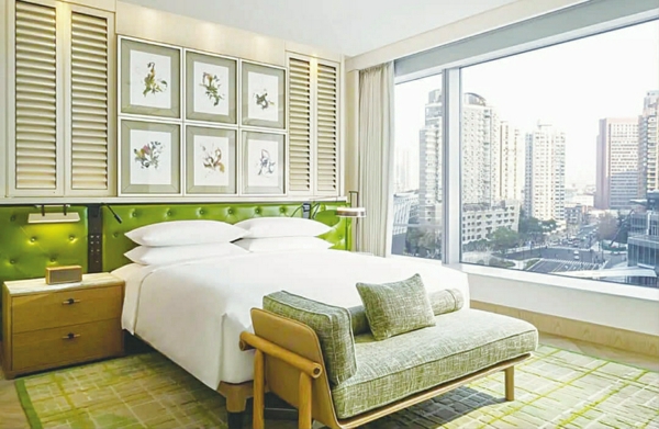 上海徐家汇中心安达仕酒店的设计理念是“引景入室”,致力于打造一个连接历史弄堂与未来天际线的“垂直上海邻里”。 酒店共设267间客房与套房,整体客房设计理念采用住宅风格,从走廊设计便突出了上海弄堂邻里中标志性的梧桐树剪影。 每间客房的房门设计得各不相同,以强调居住氛围;室内设计则借鉴复式住宅的模式:独立式衣橱巧妙衔接卫浴空间,立体瓷砖墙面营造如家般的私密氛围,而落地窗则将石库门老建筑与摩天楼交相辉映的戏剧性城市景观尽收眼底。