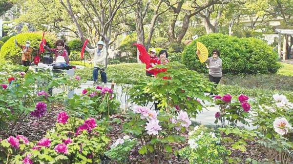 阳春二月,牡丹争艳。这两天位于漕溪公园的牡丹花在春风、暖阳下,竞相吐艳,花香扑鼻,引得无数游客前来打卡赏花。 4月2日上午九时许,一群阿姨妈妈们在牡丹花丛边跳起“扇子舞”,人影花影交相辉映,那舞动的扇子仿佛把牡丹花香播洒在公园四周, 令人沉醉其间,流连忘返。 殷志军 摄影报道