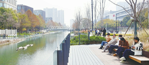 清晨七点, 徐汇区蒲汇塘畔的香樟树梢漏下第一缕晨光, 在河面铺成粼粼碎金。 晨练的吴阿姨在亲水平台上压腿舒展时惊喜地发现, 前几日还枯黄一片的花坛, 今朝已然换上嫩绿的新苗。“每年这个时候,河边都要变个样,今年这颜色搭配得真好看! ”