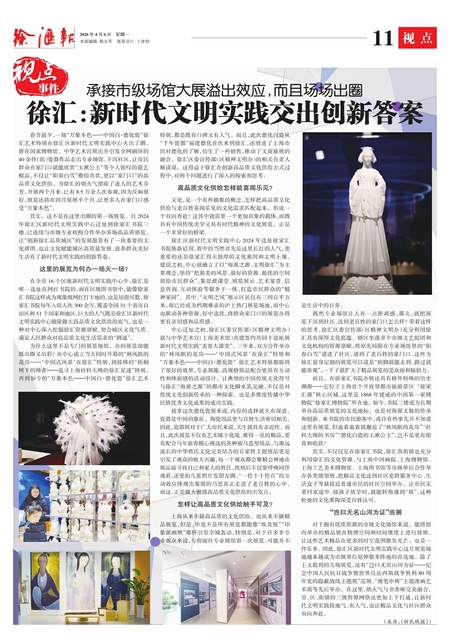 为什么这里不是专门的展览场馆, 办的展览却能既出圈又出彩?从中心成立当天同时开幕的“林风眠的花房———‘中国式风景’在徐汇”特展,到接棒的“梧桐树下的师者———追寻上海社科大师的徐汇足迹”特展,再到如今的“万象本色———中国白·德化瓷”徐汇艺术特展,都是既有口碑又有人气。 而且,此次德化白瓷从“千年瓷都”福建德化首次来到徐汇,还增进了上海市民对德化的了解,衍生了一些销售,推动了文商旅展的融合。 徐汇区委宣传部(区精神文明办)的相关负责人解读说, 这得益于徐汇在创新高品质文化供给方式过程中,对两个问题进行了深入的探索和思考。