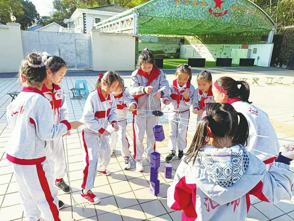 华东理工大学附属小学以“求真理、善理科、养理性”为育人目标,将幸福教育融入组织生活。学校把政治启蒙融入红色主题月、 寻访研学等活动,依托“红领巾奖章”设立“小花栗敬烈章”等特色章,以阶梯式激励增强队员归属感与光荣感,让队员在红色浸润中感知幸福。