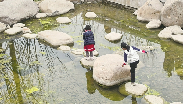 在西岸自然艺术公园里人们可以常见孩童在河溪里嬉戏、投石玩耍,十分危险。 希望园方强化安全管理,孩子家长及时劝阻。殷志军 摄影报道