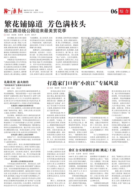 为了让景观更贴合居民需求、适配河道特色,设计团队主动走进社区,与居委会、居民面对面交流,把大家的想法放进方案里。 施工时坚持因地制宜的原则, 针对每条河道的土壤条件、 周边环境做细分优化, 为不同河道打造专属风景。 近两百名养护人员守着这方春色, 打理花簇、 清理步道、 照看水质,让曾经杂乱的岸线,成了居民们口口相传的“家门口的小滨江”。