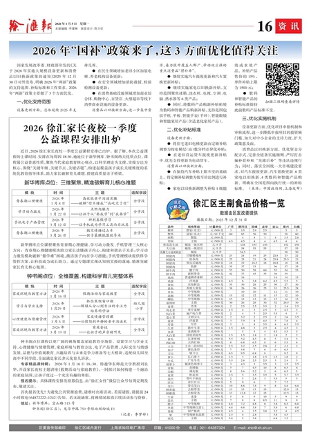 2026 徐汇家长夜校一季度公益课程安排出炉